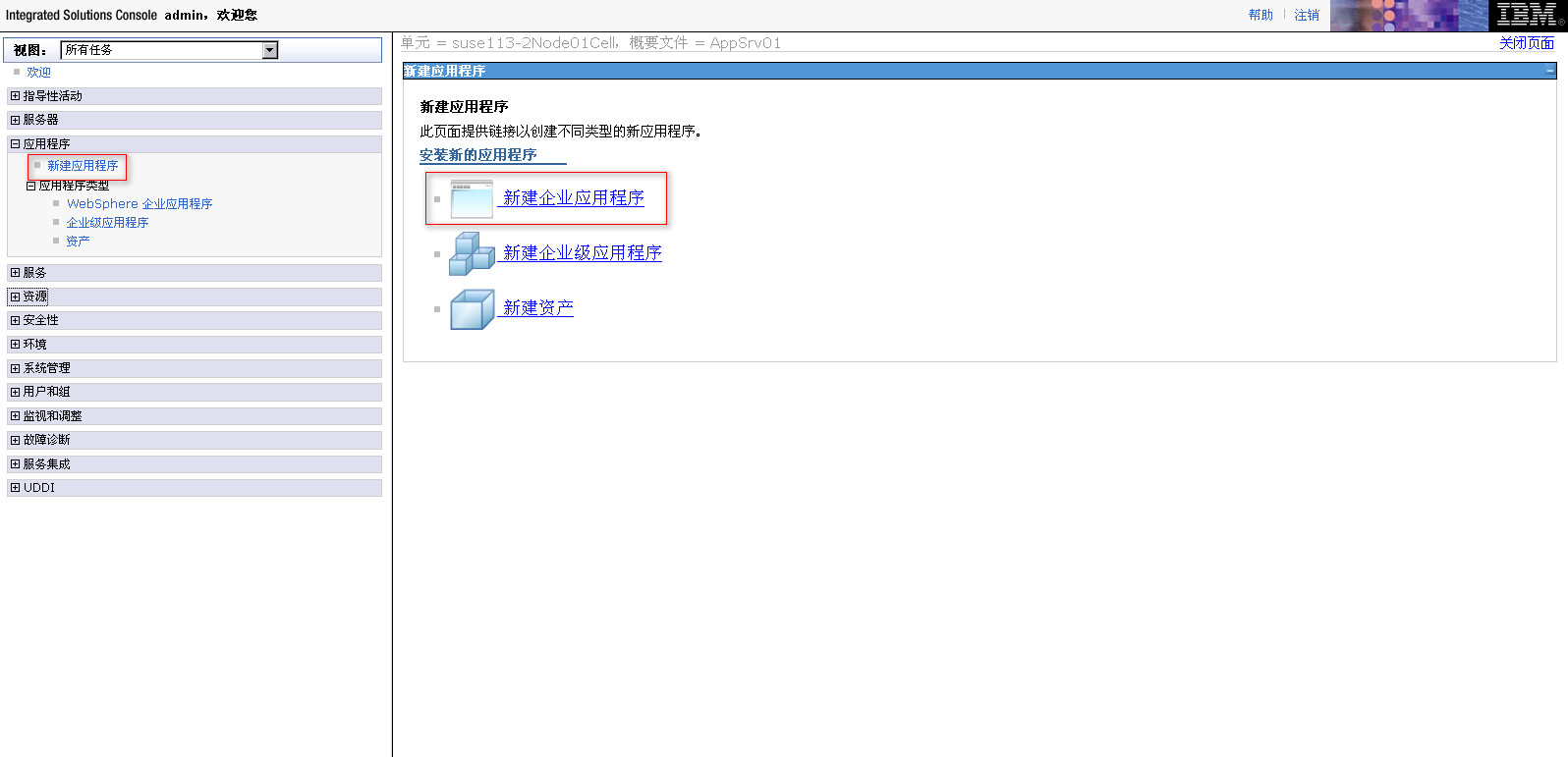 选择 应用程序,点击 WebSphere 企业应用程序,勾选新建的应用程序,点击 启动